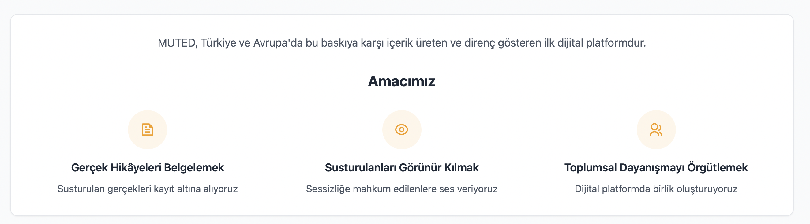 Muted Platform is an independent media and documentary platform focused on human rights that aims to make the stories of individuals and communities whose voices have been suppressed visible. It supports right-based content production with its participant structure.